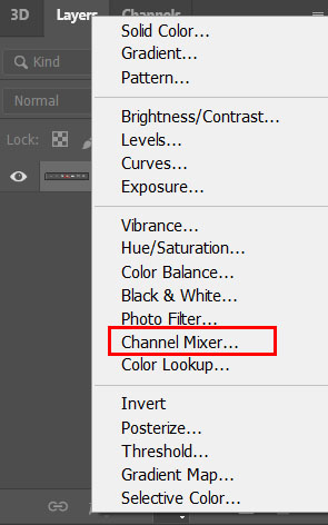 – Trong Menu của Create a new fill and ajustment layer chọn Channel Mixer…