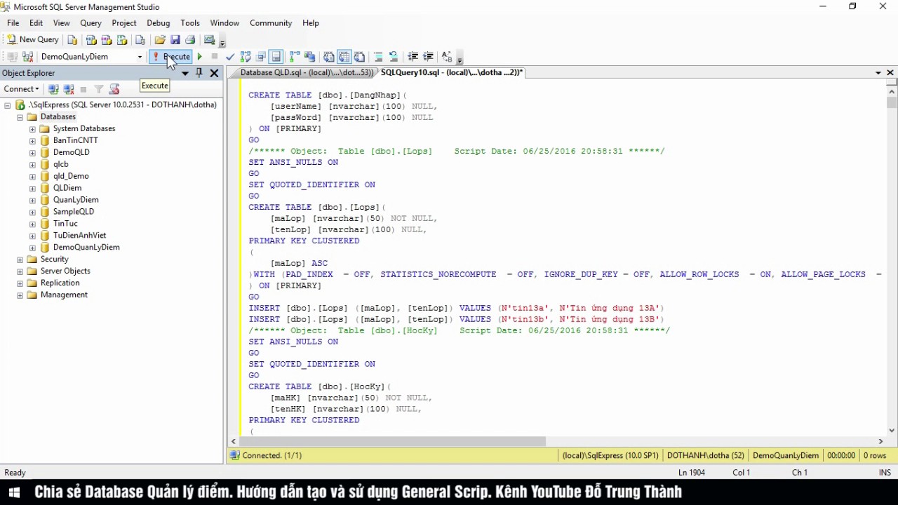 Chia sẻ Database Quản lý điểm. HD tạo và sử dụng General Script trên Sql Server