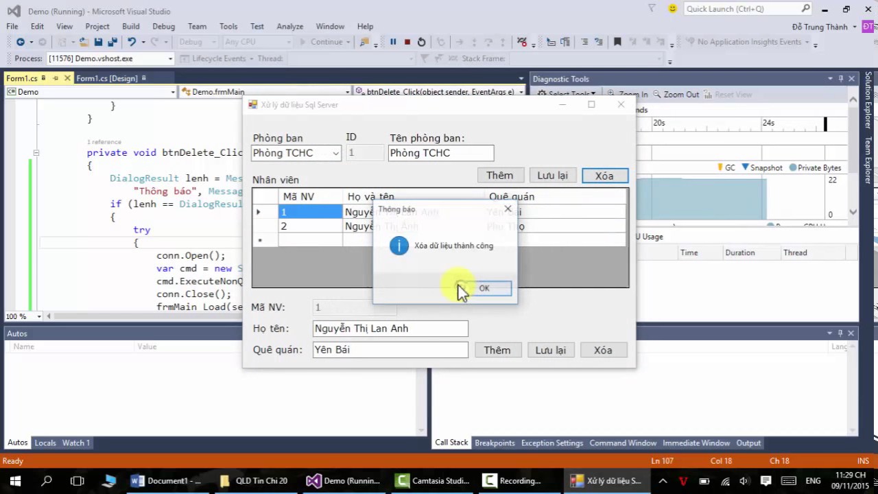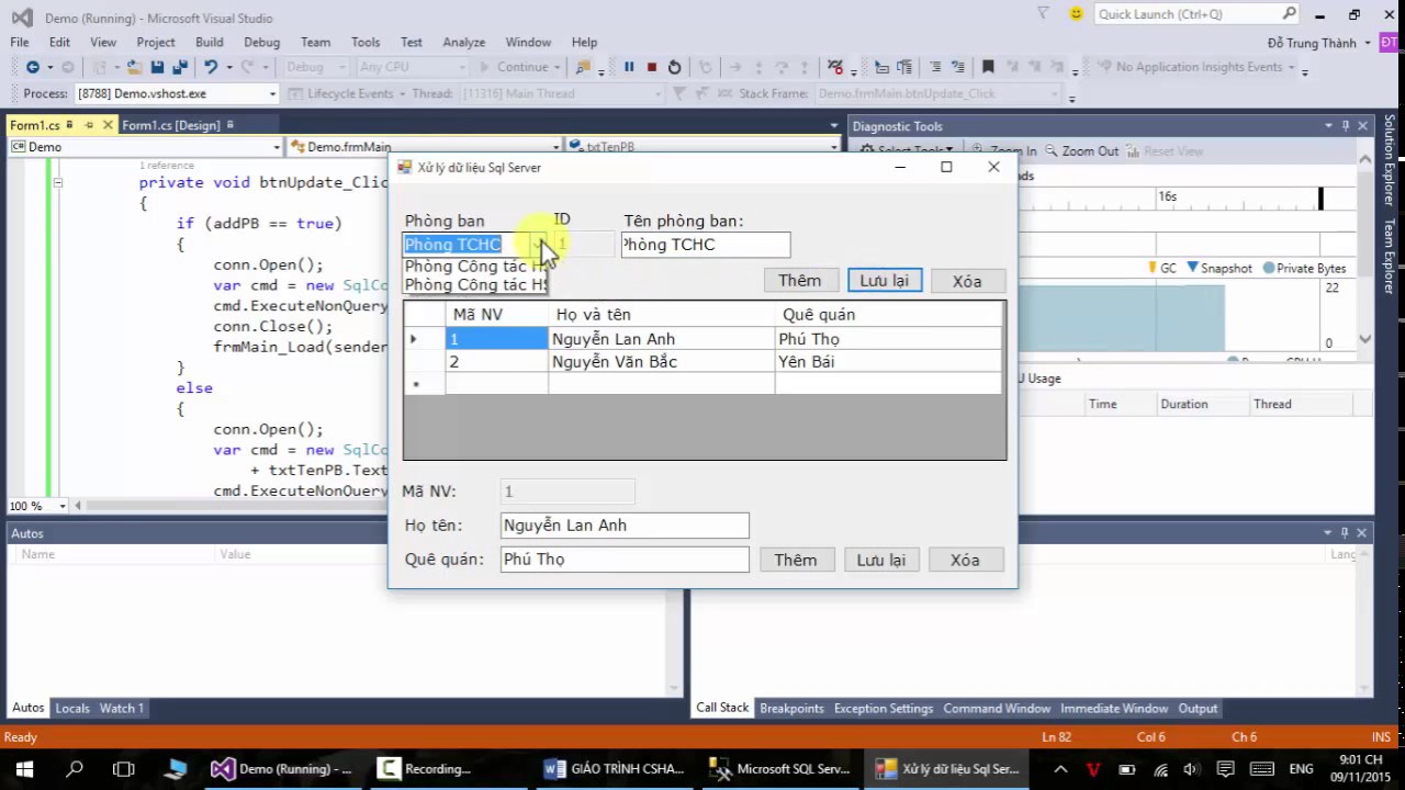 Bài 4. Thực hiện Insert, Update, Delete dữ liệu Sql Server trên Windows Form với Visual Studio 2015