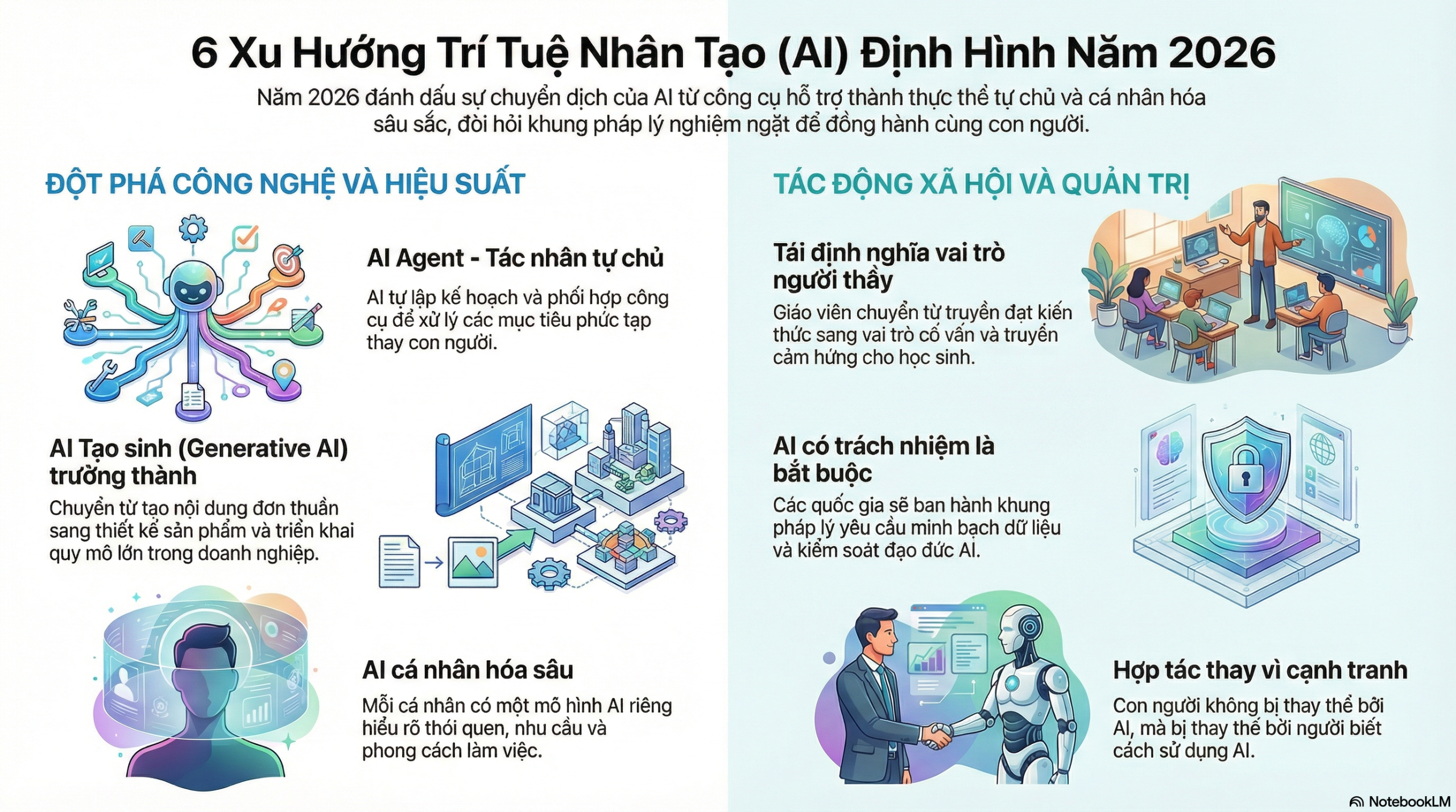 AI năm 2026 không còn là câu chuyện công nghệ thuần túy, mà là câu chuyện phát triển con người và xã hội. Quốc gia, tổ chức và cá nhân nào sớm thích ứng, làm chủ và sử dụng AI một cách có trách nhiệm sẽ nắm giữ lợi thế cạnh tranh bền vững trong tương lai.