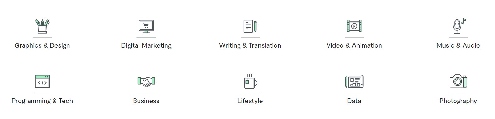 Ngoài các dịch vụ trên, Fiverr còn có rất nhiều lĩnh vực khác, từ dịch vụ tiếng nước ngoài cho đến dịch vụ phần mềm máy tính, thiết kế sản phẩm và kỹ thuật về trang web. Nói chung, Fiverr cung cấp một loạt các dịch vụ kỹ thuật số đa dạng để đáp ứng nhu cầu của khách hàng và freelancer.