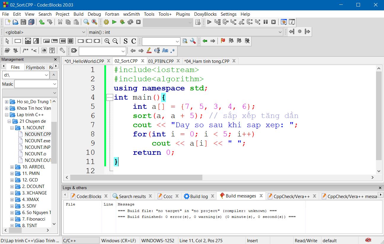 Code::Blocks là môi trường lập trình tích hợp (IDE – Integrated Development Environment) miễn phí đa nền tảng với mã nguồn mở. Hỗ trợ nhiều compiler như GCC, MSVC+,… với giao diện đa nhiệm tiện lợi.