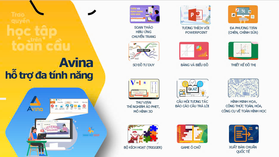 Chức năng đa phương tiện trong Avina Authoring Tool giúp bài giảng trở nên sinh động và lôi cuốn hơn bao giờ hết. Việc tích hợp âm thanh, hình ảnh, video vào bài giảng sẽ mang lại trải nghiệm học tập đầy ấn tượng cho người học.
