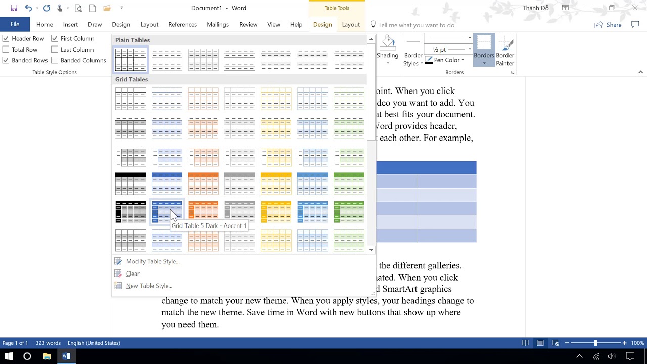 Word 365, 2016: Bài 5. Chèn và định dạng bảng biểu