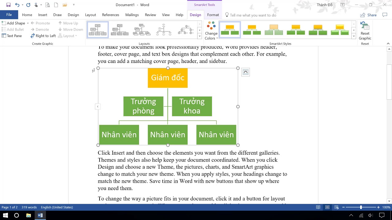 Word 365, 2016: Bài 8. Chèn và định dạng sơ đồ thông minh SmartArt