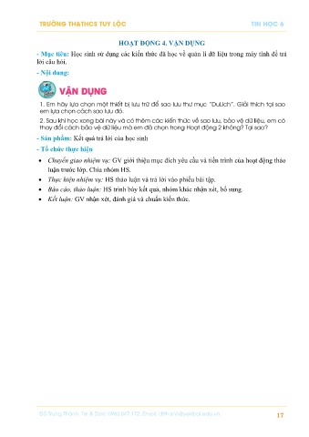 - Mục tiêu: Học sinh sử dụng các kiến thức đã học về quản lí dữ liệu trong máy tính để trả