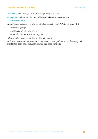 - Nội dung: Thực hiện yêu cầu 1,2 phần vận dụng-SGK T33