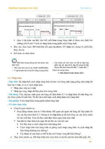 - Nội dung: Yêu cầu học sinh quan sát bảng dữ diệu hình 8.3 và nhập hàm để tính tổng các