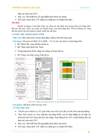 - Mục tiêu: Học sinh hiểu và thực hiện được lệnh in dữ liệu bảng tính.