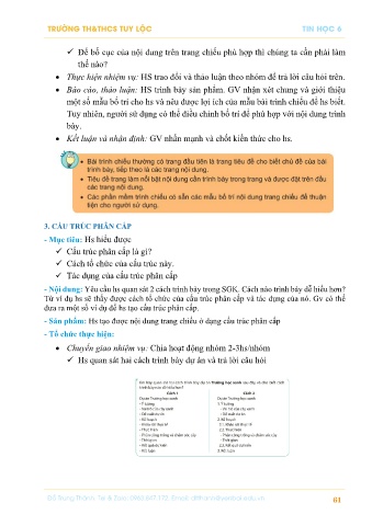 - Sản phẩm: Hs tạo được nội dung trang chiếu ở dạng cấu trúc phân cấp