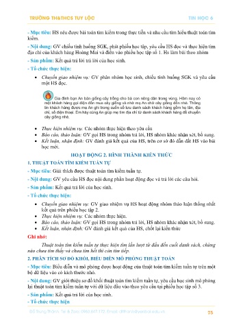 - Nội dung: GV giới thiệu sơ đồ khối thuật toán tìm kiếm tuần tự, yêu cầu học sinh mô phỏng