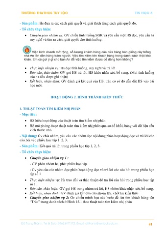 • HS mô phỏng được thuật toán tìm kiếm nhị phân qua sơ đồ khối, bảng với dữ liệu đầu