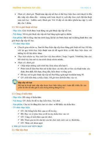 HS đọc mô tả giải thuật sắp xếp nổi bọt bằng ngôn ngữ tự nhiên trang 80.