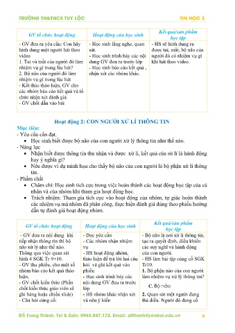 Hoạt động 2: CON NGƯỜI XỬ LÍ THÔNG TIN