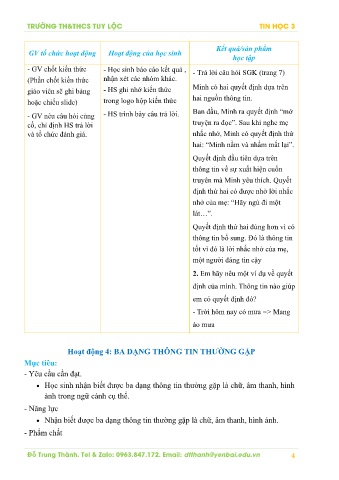 Hoạt động 4: BA DẠNG THÔNG TIN THƯỜNG GẶP