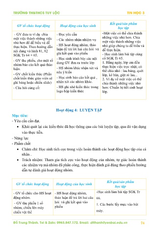 - GV tổ chức cho HS hoạt - HS hoạt động nhóm, -Học sinh làm bài tập SGK Tr