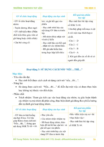 Hoạt động 3: SỬ DỤNG CÁCH NÓI “NẾU....THÌ....”