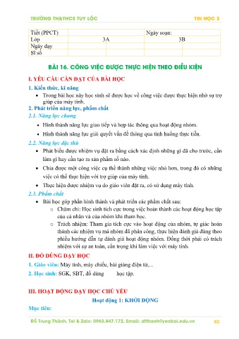 BÀI 16. CÔNG VIỆC ĐƯỢC THỰC HIỆN THEO ĐIỀU KIỆN