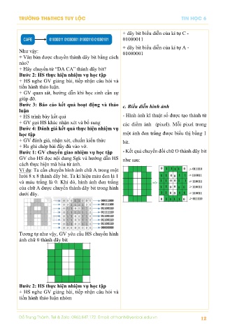 Bước 1: GV chuyển giao nhiệm vụ học tập - Kết quả chuyển đổi chữ O thành dãy bit