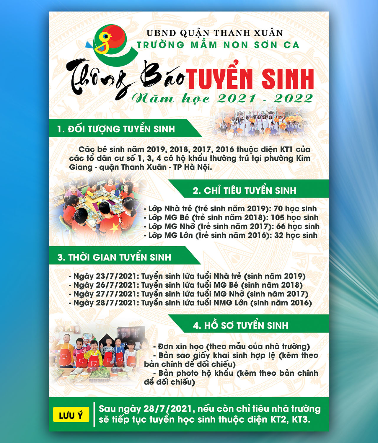 Xin mời quý độc giả tham khảo Poster chúng tôi đã thiết kế cho Trường Mầm non Sơn Ca, thành phố Hà Nội: